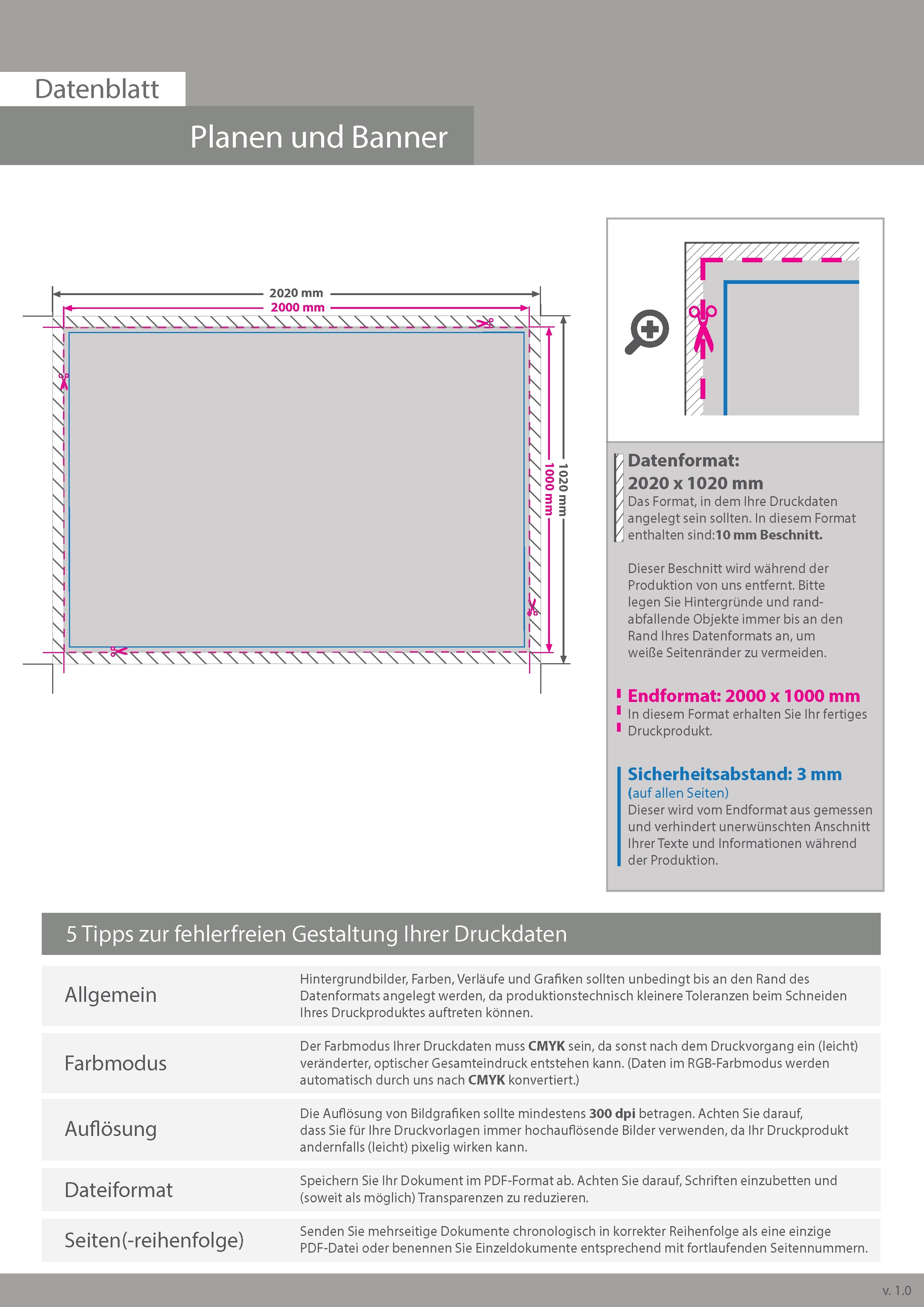 Hochwertige Stoff-Banner 200 x 100 cm, 4/0-farbig bedruckt, inkl. Karabiner