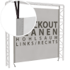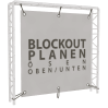 Alle Blockout-Banner können mit unterschiedlichen Befestigungsmöglichkeiten bestellt werden. Die Banner gibt es plano, mit Ösen oder Hohlsaum. Die Ösen können oben und unten, rechts und links oder rundum angebracht werden. Der Hohlsaum kann rechts und links oder oben und unten angebracht werden. Bei Bedarf können die Planen zur Verstärkung des Randes umsäumt werden.